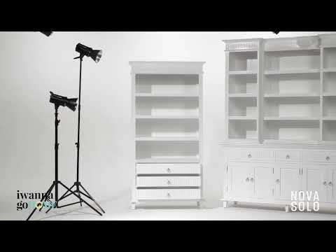Introducing our elegant and functional bookcase with three drawers. The detailed groove design on the frame and drawers add a touch of sophistication to this classic piece, while the silver hardware complements the classic white finish, creating a timeless look that will enhance any space. Crafted from high-quality plantation mahogany wood, this bookcase is strong and sturdy, ensuring that your books and other belongings are kept safe and secure. The three drawers at the base provide ample storage space for any additional items you may want to keep organized and out of sight.