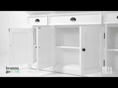 With six internal shelving compartments and three drawers, this buffet console table combines storage and display capabilities effortlessly. Its Classic White finish and Antique Brass hardware create a charming yet modern aesthetic, which is both versatile and statement-making. This piece would work as additional storage and display in your living spaces or hallways thanks to its narrower profile.
