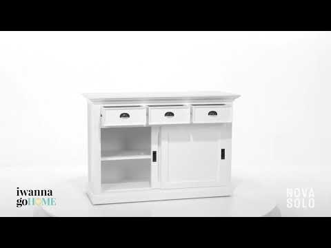 This variation on our classic buffet maintains its quaint charm with detailed crown moulding, but offers the option of sliding doors in combination with three generous drawers. Compact and versatile in the living or dining areas.