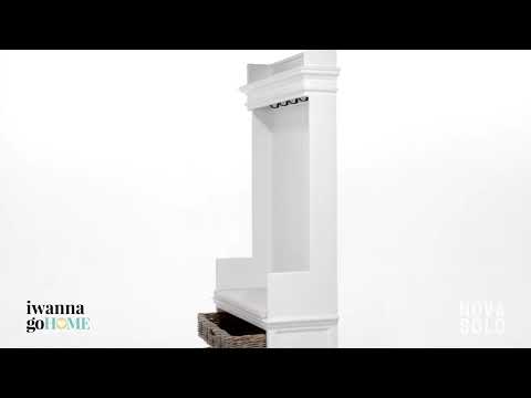 Keep entryway clutter at bay with this attractive bench and coat rack combo. A cleverly designed shelf, in place above the flared crown molding, tops the unit and offers an unexpected display opportunity. Antique brass hooks can accommodate a number of your guests’ coats or jackets with ease. A seating area is housed above two generous rattan baskets. The included seat cushion adds that extra bit of comfort at day’s end. It is made of durable 100% cotton, with a removable cover for easy cleaning. Handwoven rattan baskets are a picturesque alternative to drawers, and add a rustic, charming flavor.