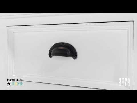 A go-anywhere design. Dining room buffet for storing dinner party essentials. Home office hero for paperwork and colouring crayons. Hallway sideboard for tidying away everyday essentials and displaying a fresh bouquet. Or even a kitchen staple, like a scaled-down dresser. And slide. Not only do sliding cupboard doors look good, but they serve a purpose too. Say you want a storage piece but in a tricky space where opening cupboard doors might prove difficult, sliding doors are the perfect solution. And don’t forget the drawers on top. It’s in the detail. Where to begin? Every piece within the Halifax Contrast collection has a classic silhouette which features a moulded plinth at its base and flared cornice on top. The antiqued hardware is in the form of traditional cup handle and is made from solid brass. And then there’s the period-style panelling and bevelled drawer fronts.
