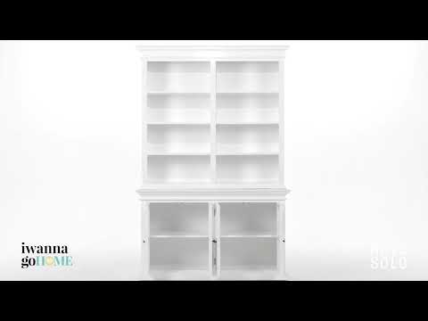 This beautiful hutch unit is designed to add both style and functionality to your home. Featuring 12 open shelves at the top and 6 bevelled glass doors at the base, this piece is perfect for displaying your favourite decor and storing your dining and entertaining essentials. The classic white finish is complemented by antique brass hardware, adding a touch of elegance and sophistication to any room.