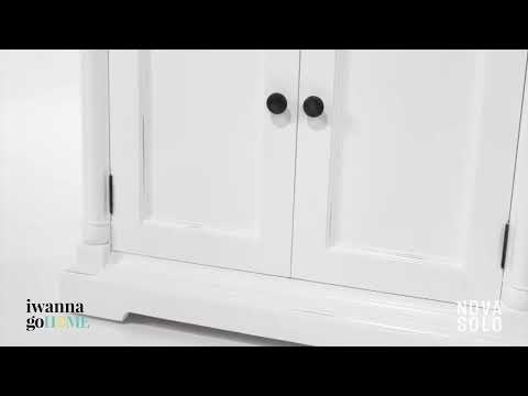 The generous proportions and farmhouse charm of this piece render it suitable for kitchen and living space. Crown moulding and shaker style doors offer subtle styling. Utensils or linens can easily be housed in the drawers while fixed shelving behind two sets of double doors provide ample storage. We’ve exposed its wooden top surface and treated it with a deep and dark wood stain that bounces the light. We’ve also distressed the paintwork slightly so it channels a wonderful pre-loved vibe.